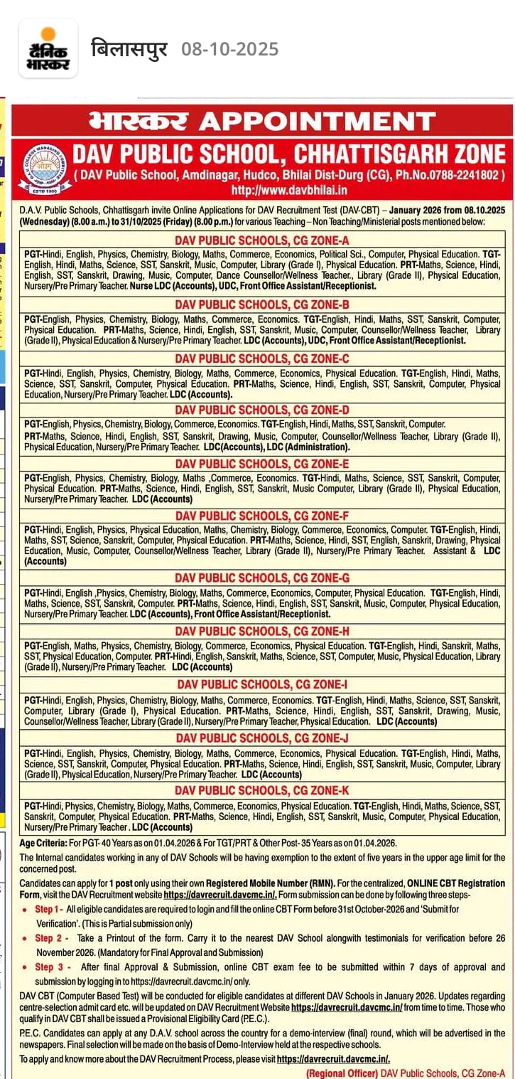 DAV TEACHING AND NON TEACHING VACANCY FOR SESSION 2026